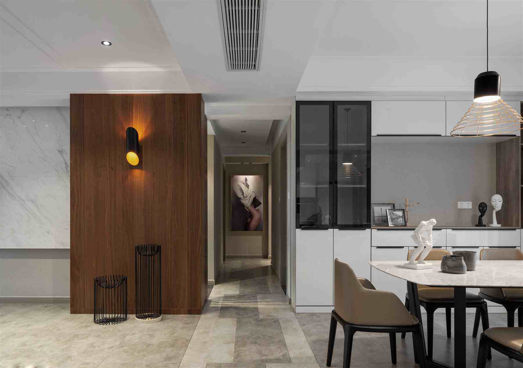 后現(xiàn)代風(fēng)格作為一種設(shè)計(jì)潮流,推崇自然、高雅的生活情趣中,更加強(qiáng)調(diào)人性化的主導(dǎo)地位,突出設(shè)計(jì)的文化內(nèi)涵。簡(jiǎn)單的石膏線線條,獨(dú)具設(shè)計(jì)感的射燈設(shè)計(jì),空間的光線明暗有序,
