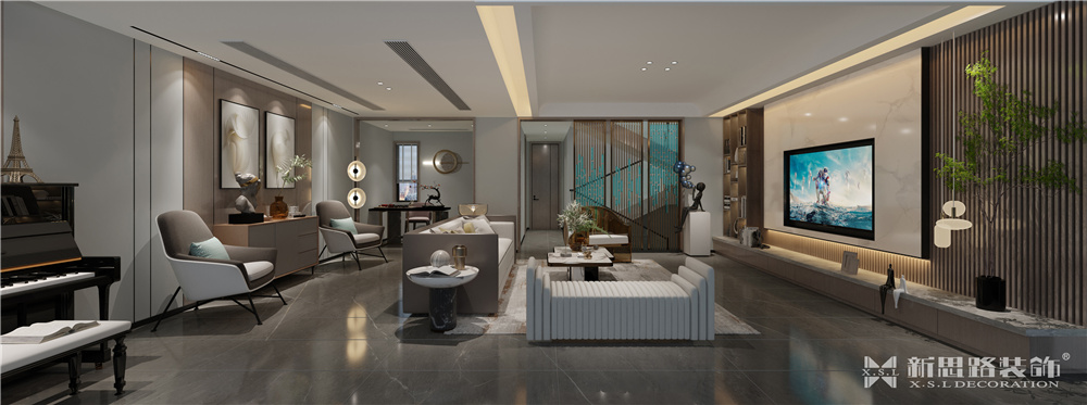 樓盤小區(qū):協(xié)信星麓原 面積:底躍330平方 風格:現(xiàn)代輕奢 設計說明 此設計為星麓原洋房底躍,面積330平方,常駐5口人家,負一樓層高為5860毫米,可以做現(xiàn)澆設計成兩層,負二樓設計