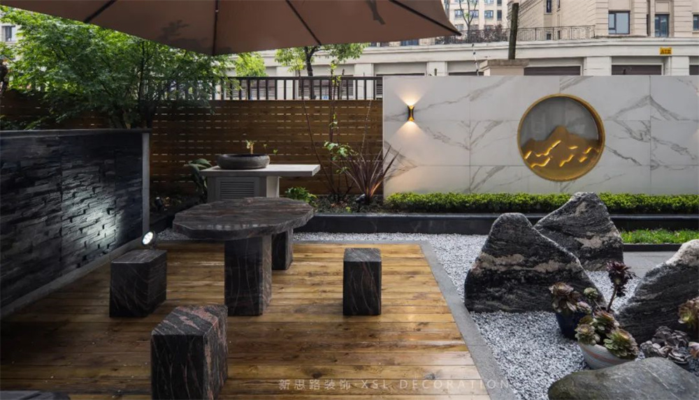 蒼松端景、茵茵苔蘚,與翻騰洶涌的浪花圖景,也一同自然而然地為東方情調(diào)添下幾筆注角,氤氳的雅韻縈繞而出。