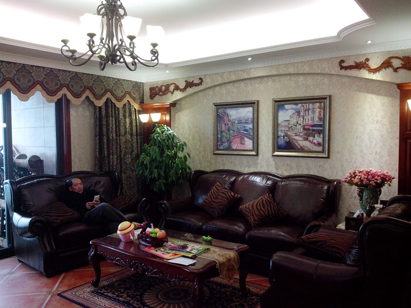 【基本情況】:業(yè)主一家五口人三代同堂,業(yè)主和她父親都是美院畢業(yè)的,所以在設(shè)計風(fēng)格上有自己獨特的見解想法。木質(zhì)紋理裝飾、地面仿古磚,營造出美式的可以在不同角度產(chǎn)生不同質(zhì)感。同時也反映在裝修上對各種仿古墻地磚、墻紙的偏愛和各種仿舊工藝的追求。多以布面墻體為主、皮質(zhì)家具。