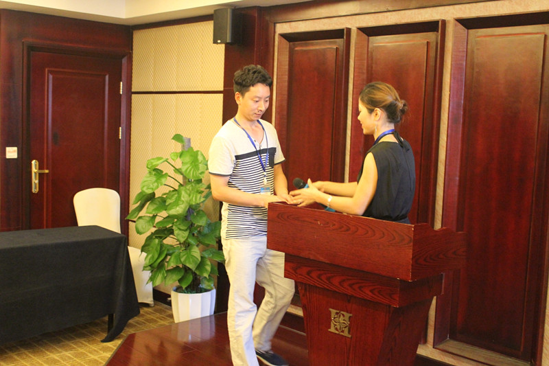 財(cái)務(wù)部蔣經(jīng)理向7月簽單冠軍頒發(fā)現(xiàn)金獎(jiǎng)勵(lì)