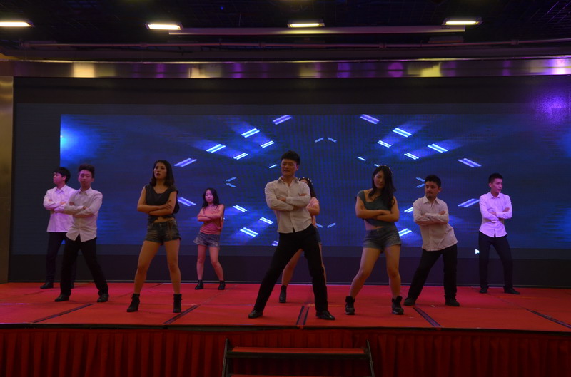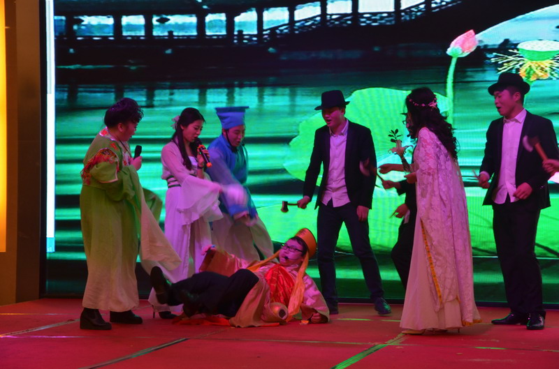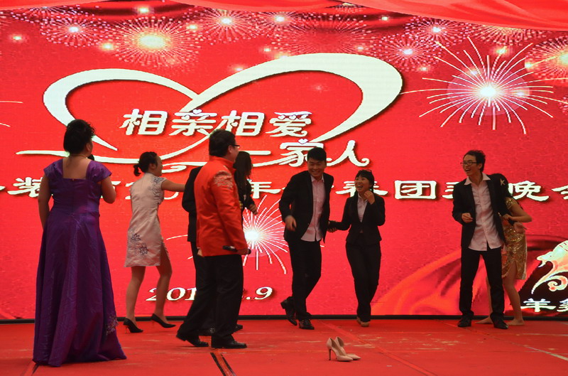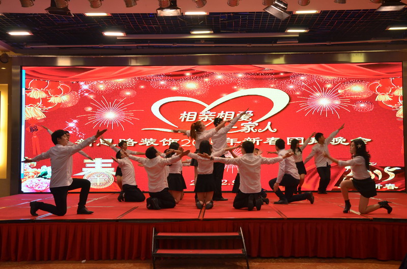 接下來的節(jié)目演出立刻讓晚會現(xiàn)場成為歡樂的殿堂。歌曲、舞蹈、小品、合唱多種節(jié)目形式,精彩紛呈,所有節(jié)目均為公司員工自編、自導(dǎo)、自演,充分反映出新思路裝飾生動而富有內(nèi)涵的企業(yè)文化。繽彩紛呈、風(fēng)格各異的十幾個節(jié)目贏得觀眾滿堂喝彩,充分展現(xiàn)出新思路家人多才多藝、能歌善舞的一面。熱鬧喜慶的《拜新年》作為開場第一個節(jié)目閃亮登場,歡快的舞蹈、喜慶的旋律、愉悅的氛圍感染著每一位在場的觀眾,為整場晚會點燃激情。活力奔放的串燒舞蹈《小蘋果》引起現(xiàn)場尖叫聲不斷;工程部家人帶來的歌曲《超越夢想》以大合唱的形式唱響了新思路人超越夢想、勇攀高峰的激情和心聲;性感柔美的歌伴舞《萬水千山總是情》更是引得場下“粉絲”陣陣尖叫。要說全場最閃亮的舞蹈,當(dāng)屬才女徐藝丹帶來的獨舞《映山紅》,優(yōu)美的舞姿訴說著無盡的情思,散發(fā)著醉人的芳香,看得人是如癡如醉。而江北店家人帶來的小品《招聘》延續(xù)去年的爆笑風(fēng)格,幽默的臺詞,惟妙惟肖的模仿讓現(xiàn)場笑聲連連,掌聲不斷。還有南坪店家人表演的小品《新白娘子傳奇》、工程部家人帶來的情景劇《交房》、沙坪壩店家人帶來的對唱《有你有我》、江北店家人表演的相聲《回家》......家人們以業(yè)余的身份發(fā)揮出了專業(yè)演員的水平,把角色演繹得惟妙惟肖,讓人嘆為觀止。