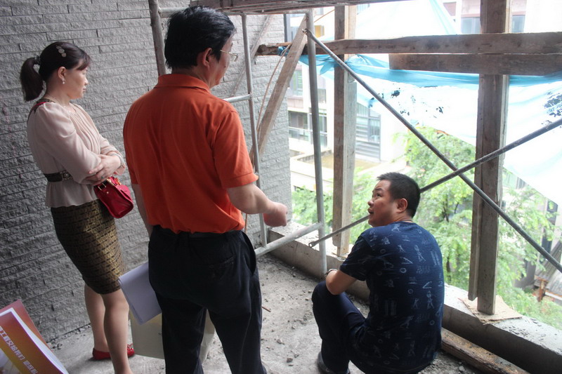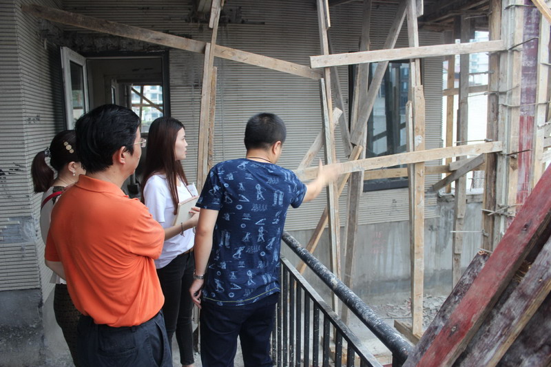 在進(jìn)場過程中,專門做頂樓花園設(shè)計的美女也來了哈。大家根據(jù)現(xiàn)場情況,商討頂樓花園的設(shè)計方案。