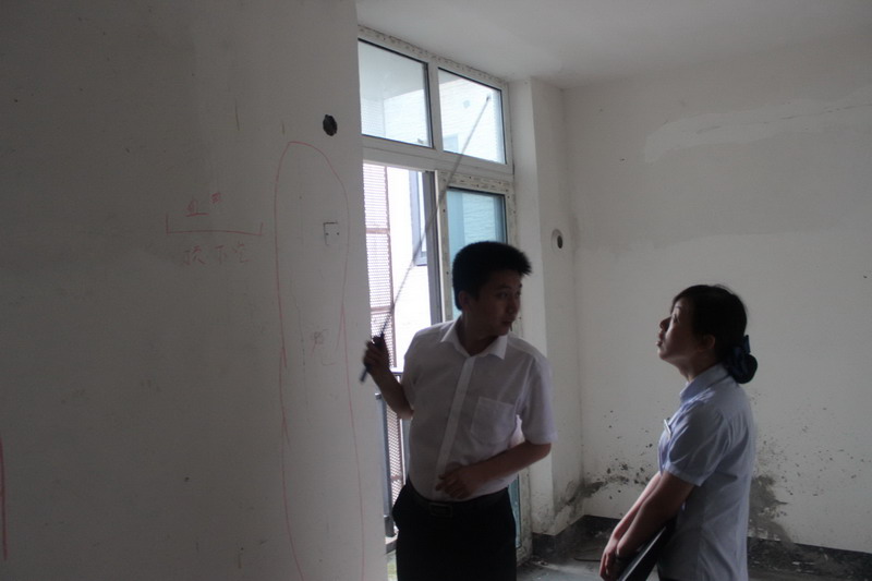 質(zhì)檢正在跟雅居樂的物業(yè)工作人員溝通墻體的空鼓情況,工作人員表示會在三個工作日之內(nèi)處理好潘老師愛居的空鼓問題。為我們的質(zhì)檢點個大大的贊!