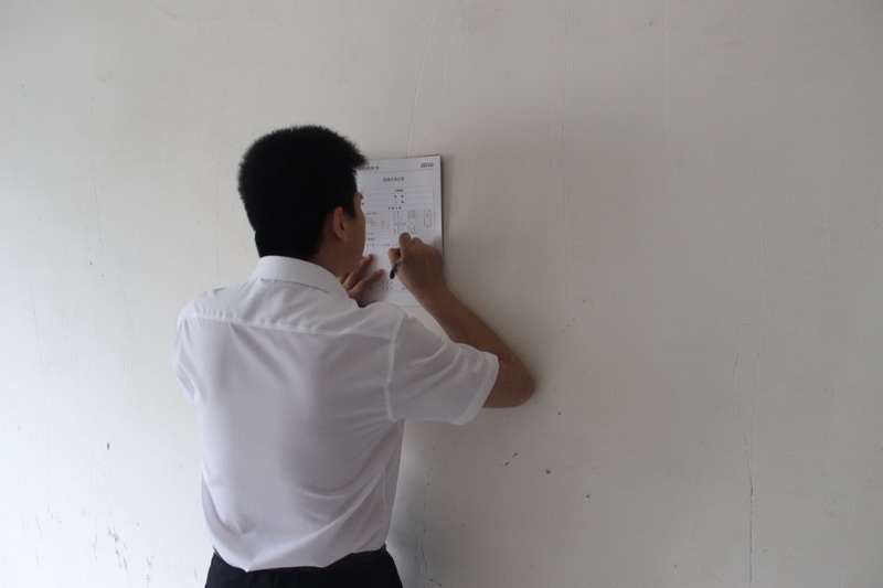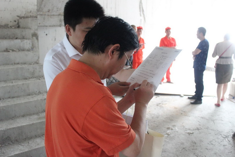 質(zhì)檢正在認(rèn)真填寫客戶服務(wù)手冊,以確認(rèn)本次進(jìn)場交底符合公司工程施工管理的相關(guān)規(guī)定。