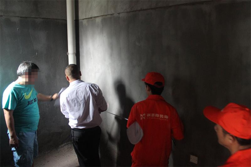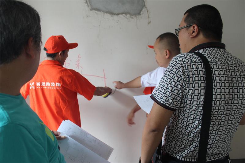 工程質(zhì)檢正在向業(yè)主介紹公司施工管理和服務的標準。新思路裝飾一直堅持“客戶滿意是唯一的工作標準”,努力踐行“裝修做客戶口碑”的理念,致力為每一位客戶提供高品質(zhì)的工程質(zhì)量和裝修服務。
