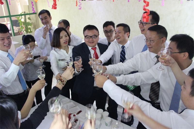 工程部家人舉杯慶賀這一幸福時(shí)刻