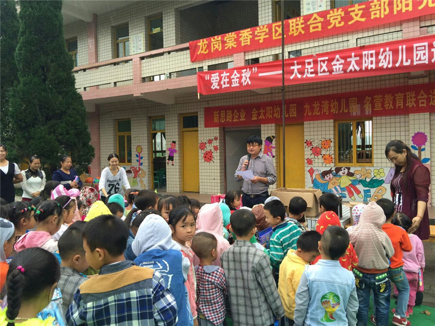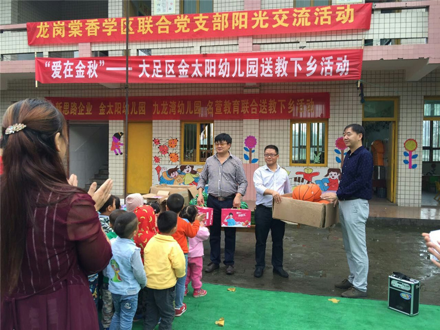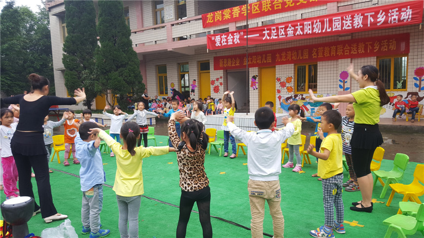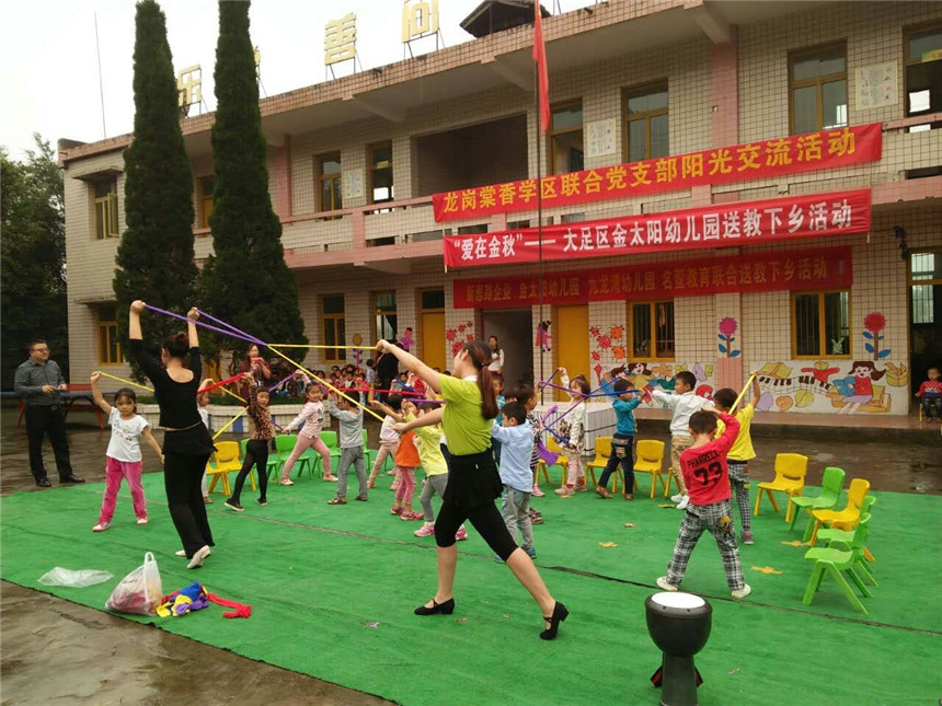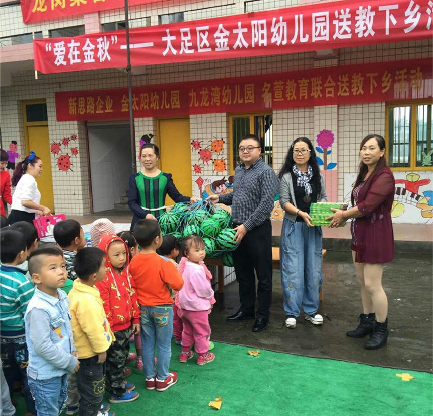 為了推進城鄉(xiāng)幼教事業(yè)的均衡發(fā)展,充分發(fā)揮優(yōu)質(zhì)民辦幼兒園的引領、示范、輻射作用,本著“幫扶共進、共同提高”的指導原則,共享優(yōu)質(zhì)教育資源,引領教師專業(yè)成長,全面提高學前教育保教質(zhì)量。新思路企業(yè)決定與金太陽幼兒園共同開展“送教下鄉(xiāng)捐贈”活動。