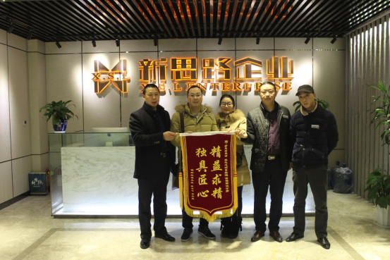 1月13日早上10點左右,重慶的早晨濃霧剛剛散開,露出多日不見的陽光,來自保利觀塘的業(yè)主羅先生一家就來到了新思路裝飾總部,為我們公司的黎志忠項目經理與黃福燕贈上一面上書“精益求精、獨具匠心”的錦旗,借以表達對我公司兩位員工的感激之情。