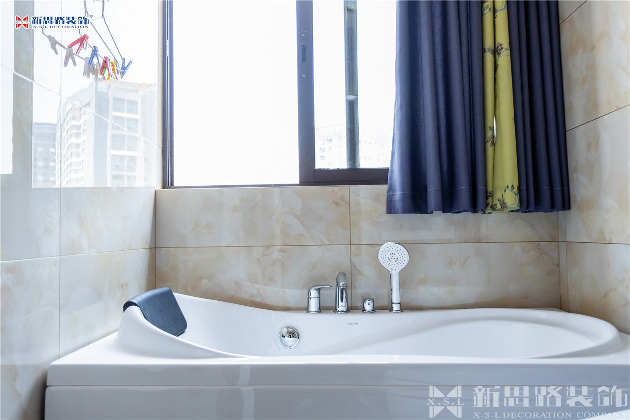 深色木質(zhì)家具與復(fù)古風(fēng)的裝飾正是美式裝修風(fēng)格的亮點(diǎn)之一,深青色的皮質(zhì)床頭與墻面色系相統(tǒng)一。衛(wèi)生間的浴缸設(shè)計(jì)非常適合休息之時(shí)放松泡澡,桌子上的上永生花與盆栽點(diǎn)綴房間,生機(jī)勃勃。