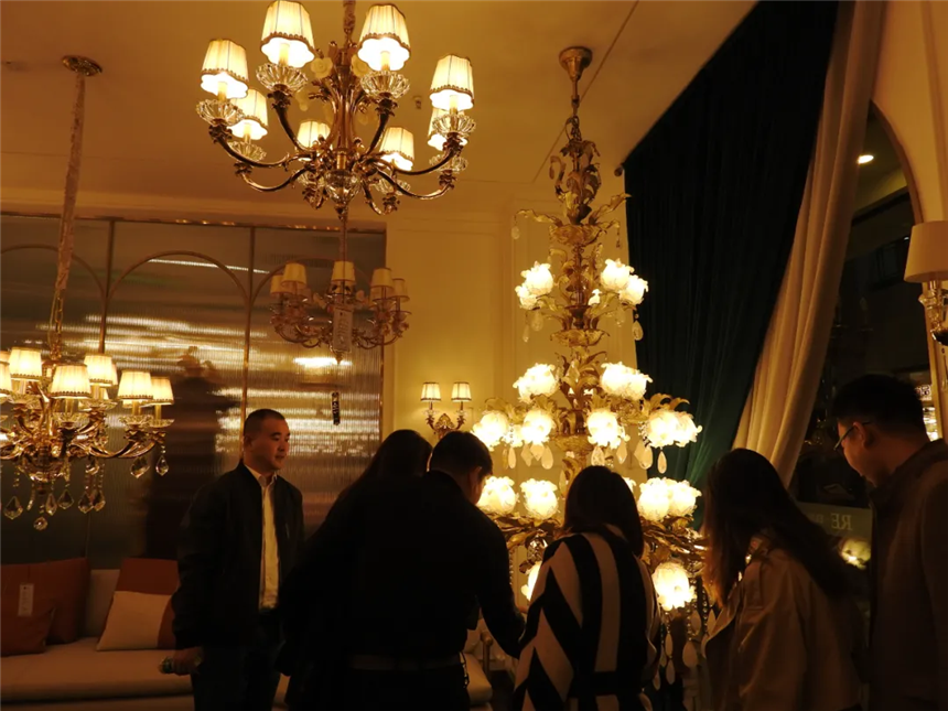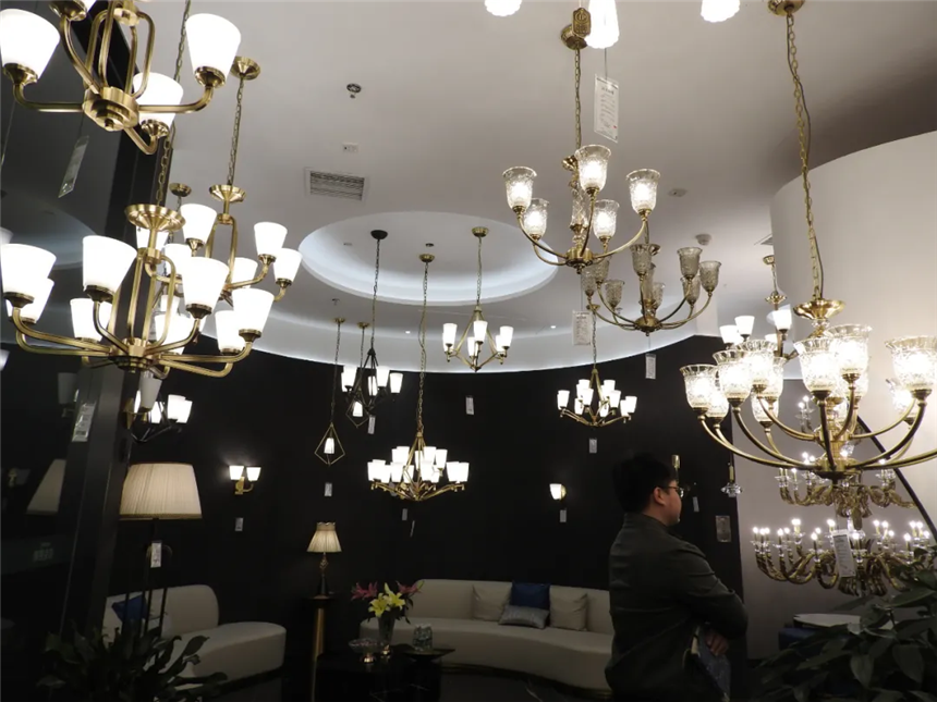 各種與歐式、美式風(fēng)格適配的燈具,奢華無(wú)比。最后一盞燈被店員稱為“鎮(zhèn)店之寶”,全手工黃銅打造,價(jià)值人民幣三十余萬(wàn)