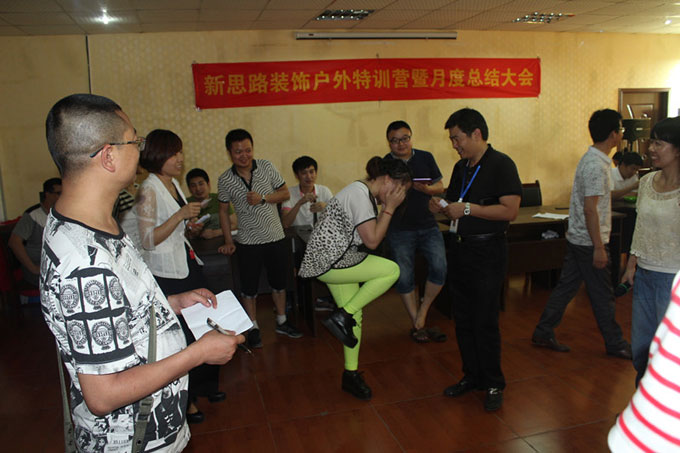 六月的云篆山山色秀麗,郁郁蔥蔥,一派生機(jī)盎然的景象。6月3號(hào)下午3點(diǎn),新思路裝飾戶外特訓(xùn)營(yíng)活動(dòng)正式開(kāi)始。由于天氣炎熱,為員工身體著想,戶外拓展活動(dòng)臨時(shí)改在室內(nèi)進(jìn)行。雖然是在室內(nèi),但所有人依舊熱情高漲,斗志昂揚(yáng)。在張總的指揮下,60多號(hào)員工分成了三個(gè)小隊(duì),“NO.1”“雄霸天下”“野狼隊(duì)”,每一個(gè)名字都霸氣無(wú)比,盡顯新思路裝飾開(kāi)拓創(chuàng)新、銳意進(jìn)取的風(fēng)范。隨著時(shí)間一分一秒的過(guò)去,大家早已是汗流浹背,但是再高的溫度也抵擋不住新思路人火熱的心?;顒?dòng)緊張有序地開(kāi)展,提前引爆了一整個(gè)夏天的激情與活力。
