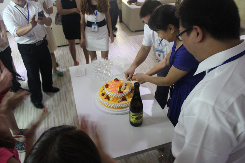 隨后,在所有人“祝你生日快樂”的美妙歌聲和熱烈掌聲中,李總和特邀客戶嘉賓一起打開香檳,切開新思路十周歲的生日蛋糕,共同祝福新思路十周歲生日。喝著芬香醉人的香檳,品嘗著香甜可口的蛋糕,在場的每個人臉上都洋溢著喜悅的笑容。李總也與客戶頻頻舉杯,共同慶祝這一美妙時刻。大家談笑風生,豪情滿懷,暢談過往的艱辛坎坷,憧憬著未來的美好畫卷,慶典現(xiàn)場氣氛達到最頂點。
