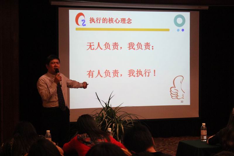 本次培訓由張總親自擔任主講人。在培訓中,他圍繞“精英成長”主題,以“你是誰”作為引線,以PPT的形式向大家詳細講解了“清晨7問”、“堅持的重要性”、“目標的重要性”、“人才的定義”、“性格的改變”、“成果思維”、“個人執(zhí)行力分解”等精彩內(nèi)容。培訓中間還穿插了提問、上臺分享等環(huán)節(jié),張總通過幽默風趣的講解,積極有效的互動,讓在場的每一位家人都深刻接受了一次心靈上的震撼和洗禮。特別是在“感恩父母”環(huán)節(jié),在場的許多家人都情不自禁地流出了感動的淚水,對各自過去的工作和生活有了一個深刻的反省,大家懂得了要常懷感恩之心,從感恩父母延展至感恩他人,終會使我們收獲人間大善。