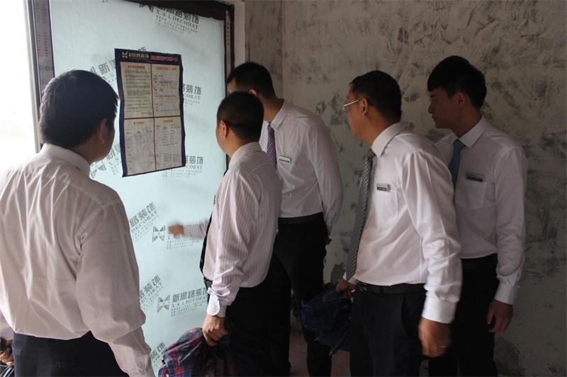 9月份是傳統(tǒng)的裝修旺季,也是公司保品質(zhì)、促業(yè)績(jī)的關(guān)鍵時(shí)期,為保障工程質(zhì)量,加強(qiáng)工地管理工作,9月11日,由張總親自帶隊(duì),以全體管理層干部組成的巡查小組,冒雨對(duì)金輝城·花樣派、保利江上明珠、魯能領(lǐng)秀城、龍湖·拉特芳斯等多個(gè)工地進(jìn)行了突擊檢查。