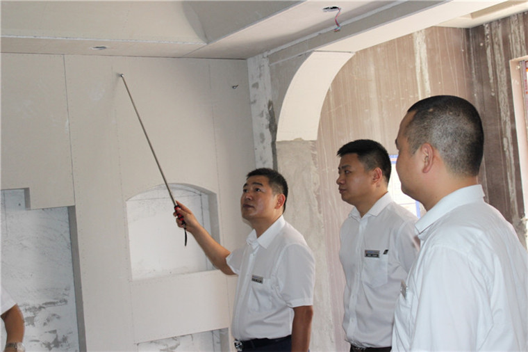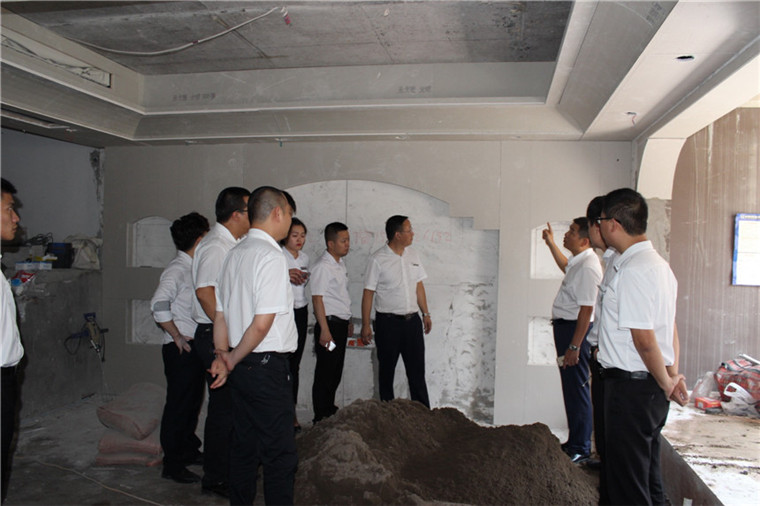 7月質量檢查月,新思路裝飾展開了下半年的第一次工地大巡查,由公司副總經理張強,工程部經理文斌帶隊,以工程質檢、項目經理、客服人員等組成的巡查小組,對金輝城·春上南濱、和記黃埔·和黃御峰、金科·中央御園、力帆·紅星國際、融創(chuàng)·凡爾賽、華宇上院、協(xié)信公館等多個工地進行了突擊檢查。