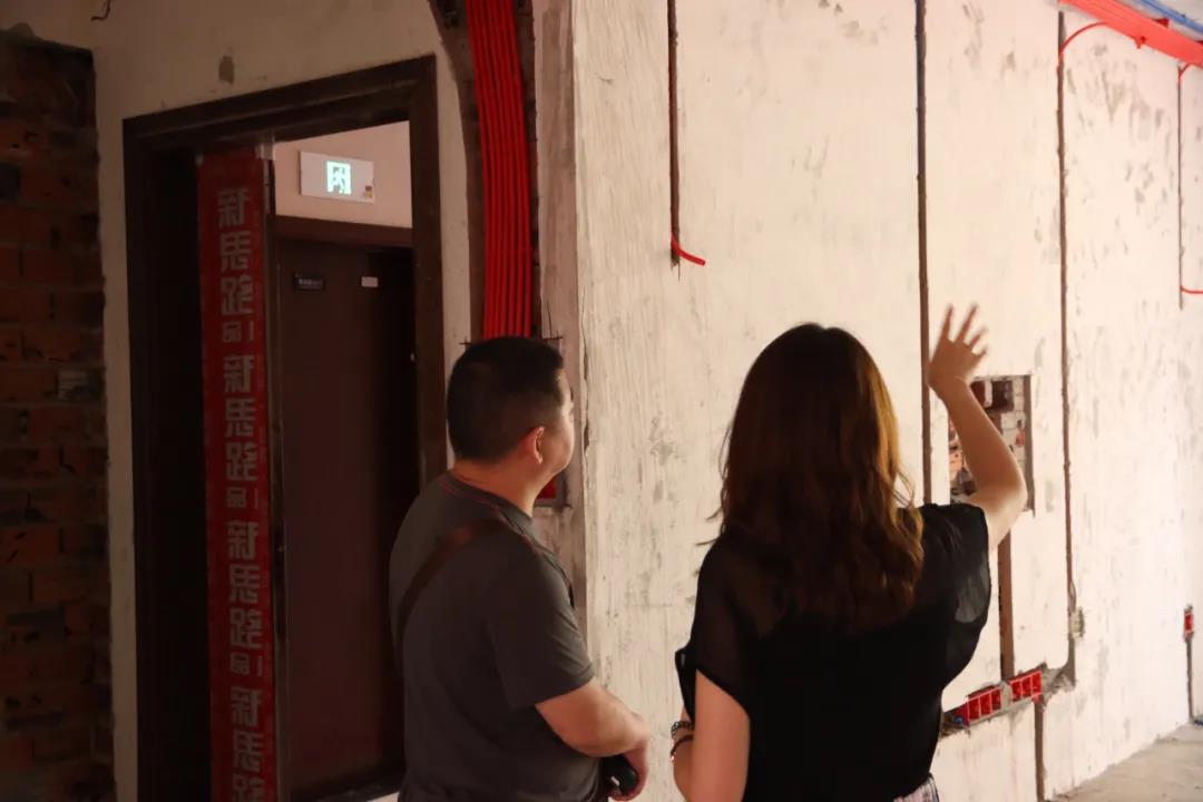 正巧,我們到達(dá)工地的時(shí)候,客戶也來到工地查看工程進(jìn)度。設(shè)計(jì)師趙亞飛便和客戶聊了起來:從施工的情況到設(shè)計(jì)的細(xì)節(jié),再從現(xiàn)場的進(jìn)度到一些設(shè)想,設(shè)計(jì)師趙亞飛與客戶進(jìn)行深入交談,一邊聊一邊在現(xiàn)場實(shí)地查看,對設(shè)計(jì)上做出一些微小的調(diào)整,以更滿足客戶的想法和要求。