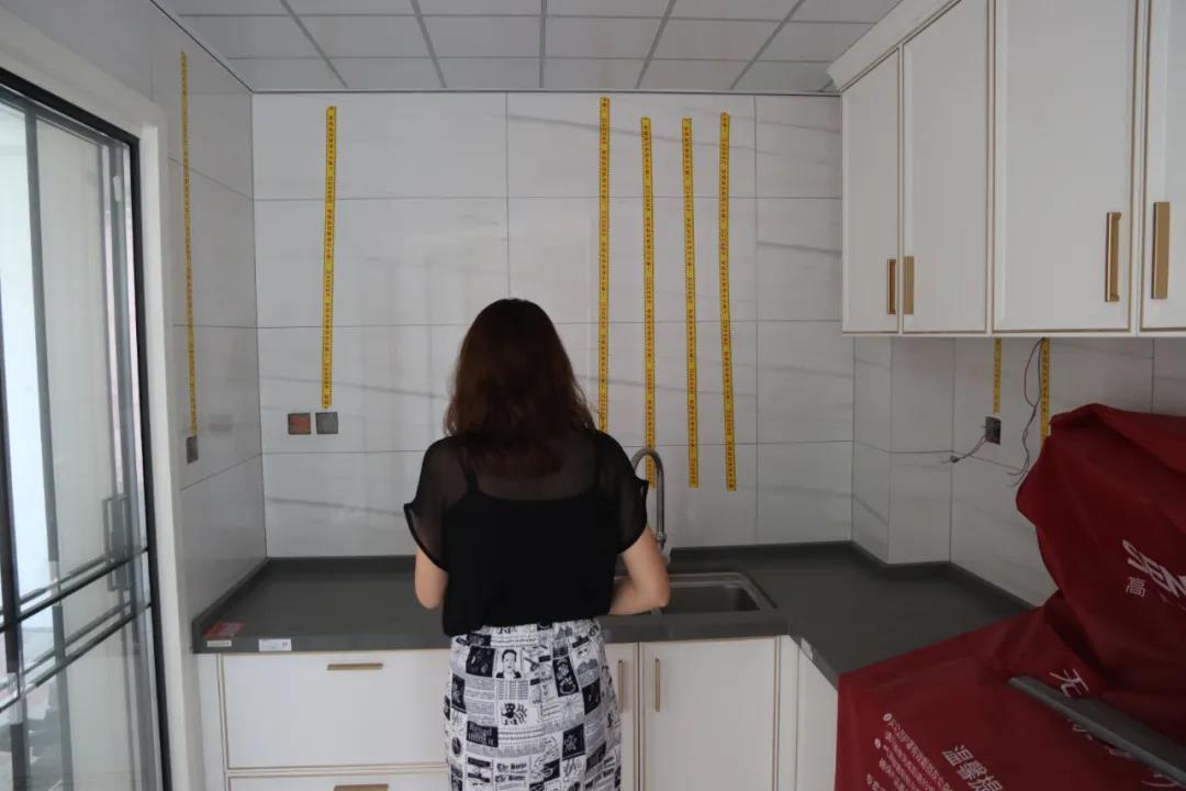 這個(gè)工地上定制了許多柜體,而重慶最近天氣濕度很高,溫度也高,在這種環(huán)境下,木質(zhì)柜體很容易發(fā)霉、變形,造成柜體損壞。為排查這種情況,設(shè)計(jì)師趙亞飛對房間內(nèi)已經(jīng)安裝好的柜體進(jìn)行了逐一檢查和確認(rèn),保證柜體不會出現(xiàn)問題。