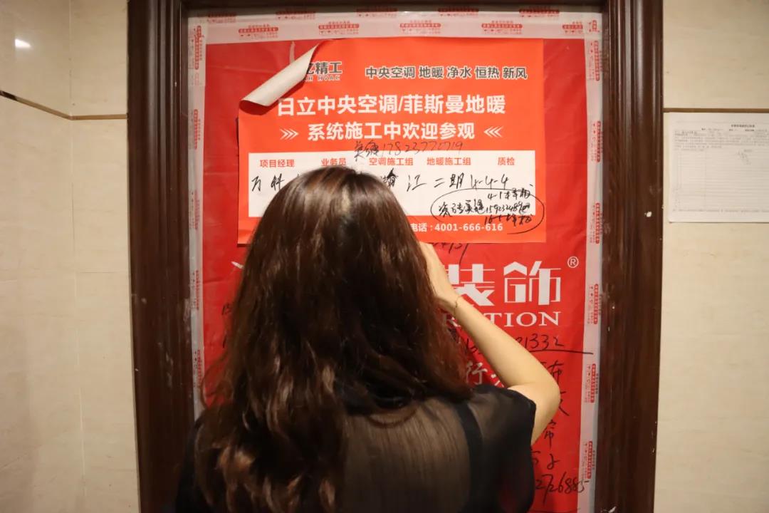 金域?qū)W府工地。這是一處正在進(jìn)行硬裝階段的工地,需要設(shè)計(jì)師注意的地方很多。我們到達(dá)現(xiàn)場后,設(shè)計(jì)師趙亞飛首先第一件事就是主動在門上進(jìn)行簽到和在公司群里打卡。良好的管理制度才能有著高效率,能讓我們更好地為客戶服務(wù)。