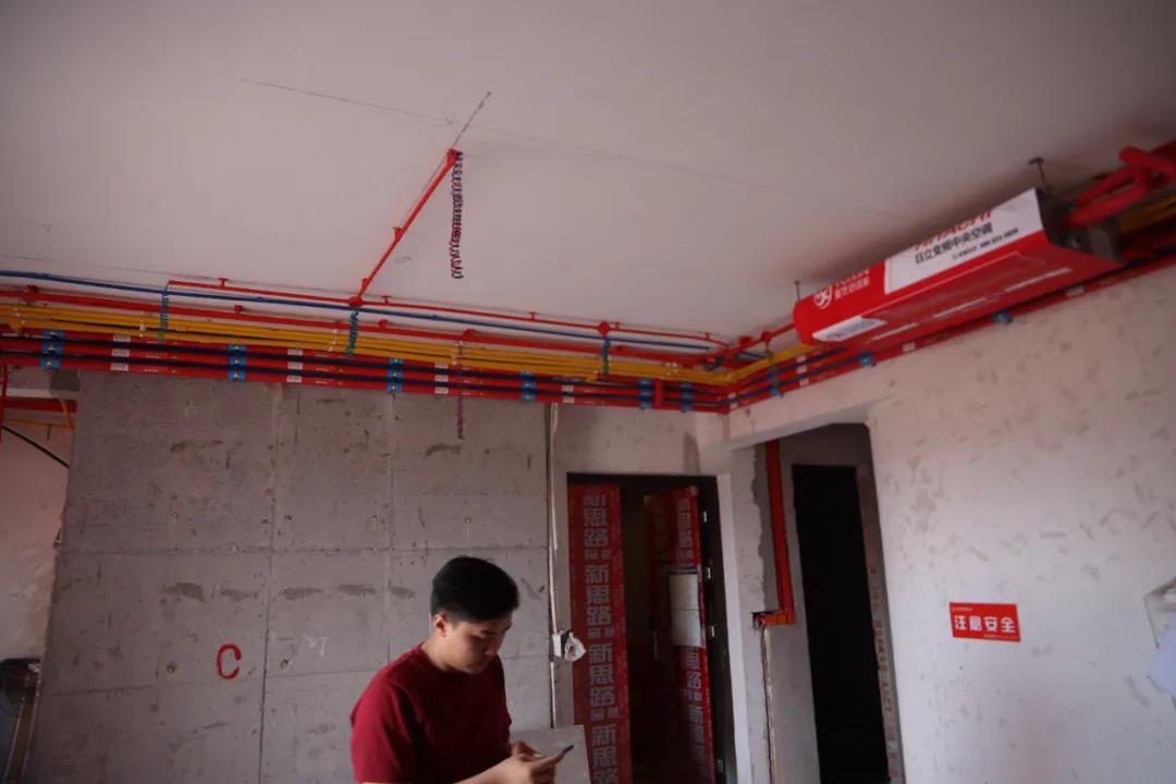 第二個工地已經進行到水電階段,設計師戴杰來到工地后,需要對現(xiàn)場的管線布置再次進行檢查,看其是否符合自己設計要求和預期,保證呈現(xiàn)和還原出設計圖紙的想法還有功能,這既是對客戶的負責,也是對自己的設計負責,讓我們的客戶住進真正滿意和舒適的新家。