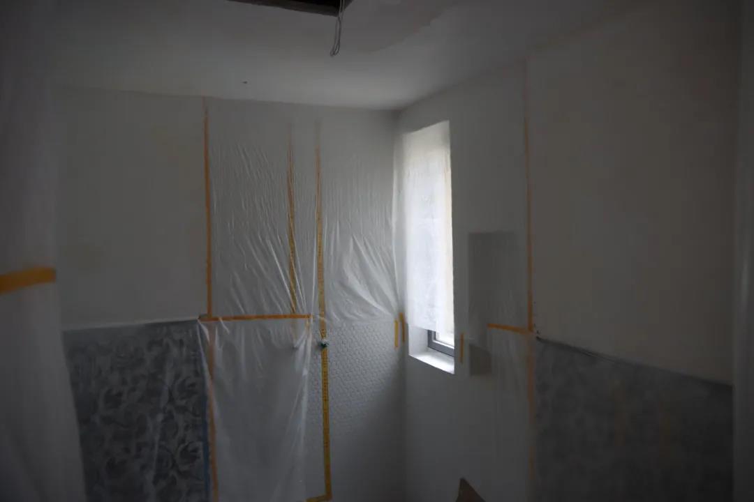 ▲已經完成的衛(wèi)生間造型做好了保護措施