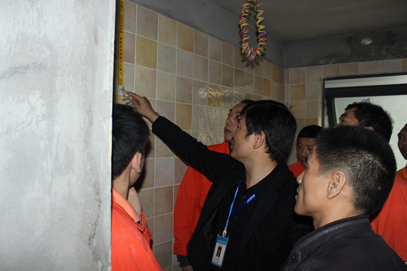 此次培訓由具有二十多年施工經驗的張總親自主持。首先,張總以提問的形式宣講了公司的基本信息和企業(yè)文化,同工人們進行了熱烈互動,對于回答正確的工人,當場給予現金獎勵。張總強調,作為新思路裝飾的一員,牢記公司的一些基本信息不僅能加強對公司的了解,同時也是展現新思路員工職業(yè)素養(yǎng)和形象的新窗口。隨后張總又從泥水施工新工藝技術、工序流程、規(guī)范標準、注意事項等方面對工人們進行了專業(yè)培訓。在培訓過程中,張總以現場在施工工地為實例,通過一些鮮活的事例,比如一根線,兩顆釘子,怎樣找水平;平整度、垂直度如何檢測;磚與磚接縫高低差標準;陰陽角角度差等,進行現場示范和講解。工人們也積極發(fā)言,提出一些獨到的觀點和見解,張總也熱情耐心地同他們交流討論,現場氣氛輕松而熱烈。