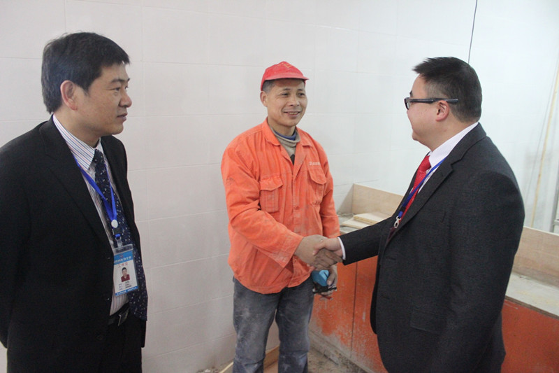 在美的集團員工食堂工地,李總一行認(rèn)真察看了解了工地的施工進(jìn)度、施工細(xì)節(jié)、工藝工序等情況,同時還詳細(xì)了解了工人生活和工地安全監(jiān)管情況。針對檢查中發(fā)現(xiàn)的問題,李總要求現(xiàn)場負(fù)責(zé)人要切實負(fù)起責(zé)任,保證施工質(zhì)量,決不允許留下安全隱患,同時做好工人工資發(fā)放的各項準(zhǔn)備,讓工人們開開心心過好年。