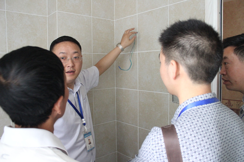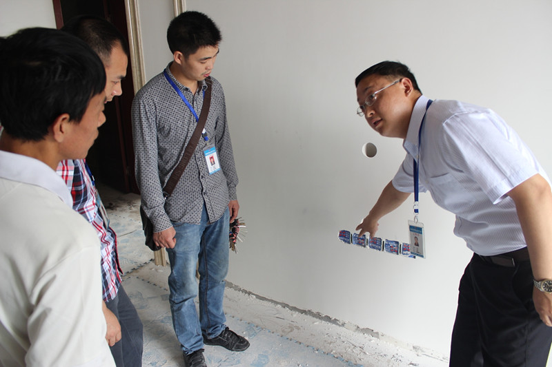此次巡查嚴(yán)格遵循公司檢查制度和流程,檢查項目包括工程進度、安全防護、工程形象、工地衛(wèi)生、成品保護、工藝標(biāo)準(zhǔn)等近百余項國家標(biāo)準(zhǔn)。大如是否私自變動工程,是否按公司規(guī)定使用主材和輔材;細微如每一個線頭的安全保護,每一塊瓷磚之間的縫隙寬窄,均按公司標(biāo)準(zhǔn)嚴(yán)格檢查?,F(xiàn)場發(fā)現(xiàn),現(xiàn)場指導(dǎo),現(xiàn)場整改,將工程質(zhì)量問題控制在發(fā)生階段。巡查小組事無巨細的檢查、對施工質(zhì)量的嚴(yán)苛態(tài)度,讓在場的業(yè)主與施工工人都深刻體會到了新思路對于工程質(zhì)量近乎偏執(zhí)的高要求。文經(jīng)理在檢查的同時,也現(xiàn)場對新進的項目經(jīng)理進行了指導(dǎo)和教學(xué),不斷強調(diào)公司工程施工上的一些標(biāo)準(zhǔn)和要點,并把自己的工程管理經(jīng)驗分享給他們。
