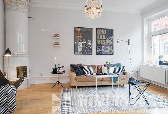 一、黑白相間條紋地毯搭配北歐客廳